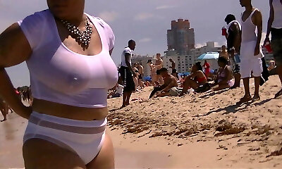 South Beach Ebony Swimming in See Through T-T-shirt