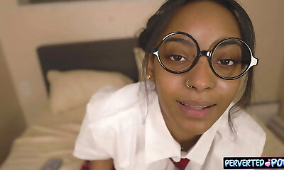 Luxurious schoolgirl seduces her nerdy classmate while he's playing the PlayStation becouse she wants painfully to fuck