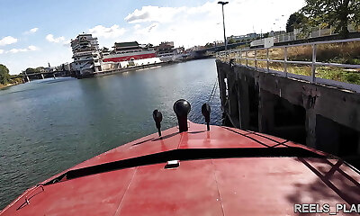 An Italian with an athletic bod cheats on her boyfriend and gets fucked publicly on a boat in rectal by 2 strangers !!