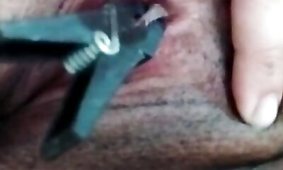 Obese black clit holding pee while rubbing